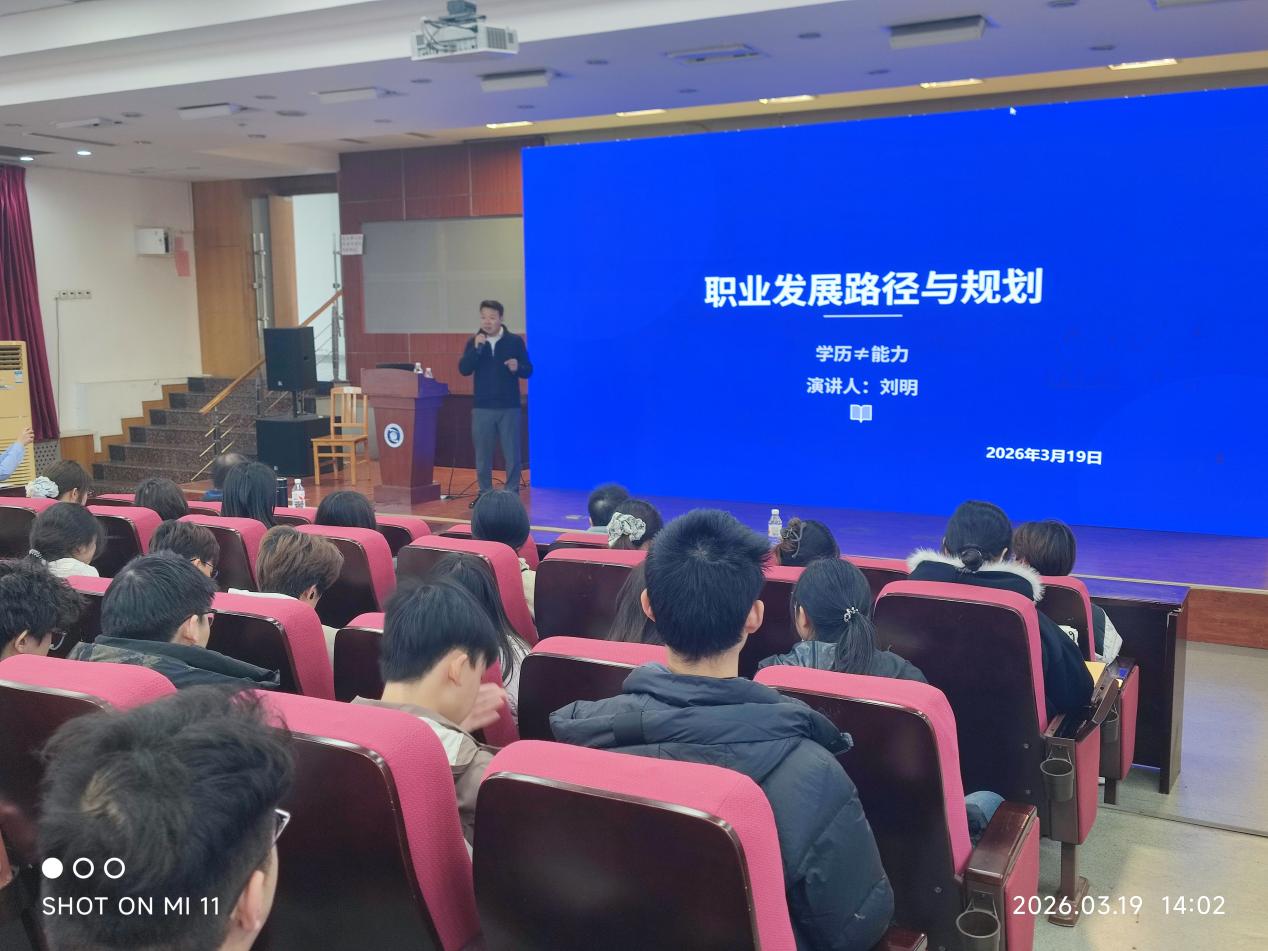 刘明总经理深耕行业多年,拥有丰富的企业管理和人才选拔经验。本次分享他以“职业发展路径与规划”主题,以“学历≠能力”为核心切入点,结合当下大学生就业现状,层层递进展开分享。