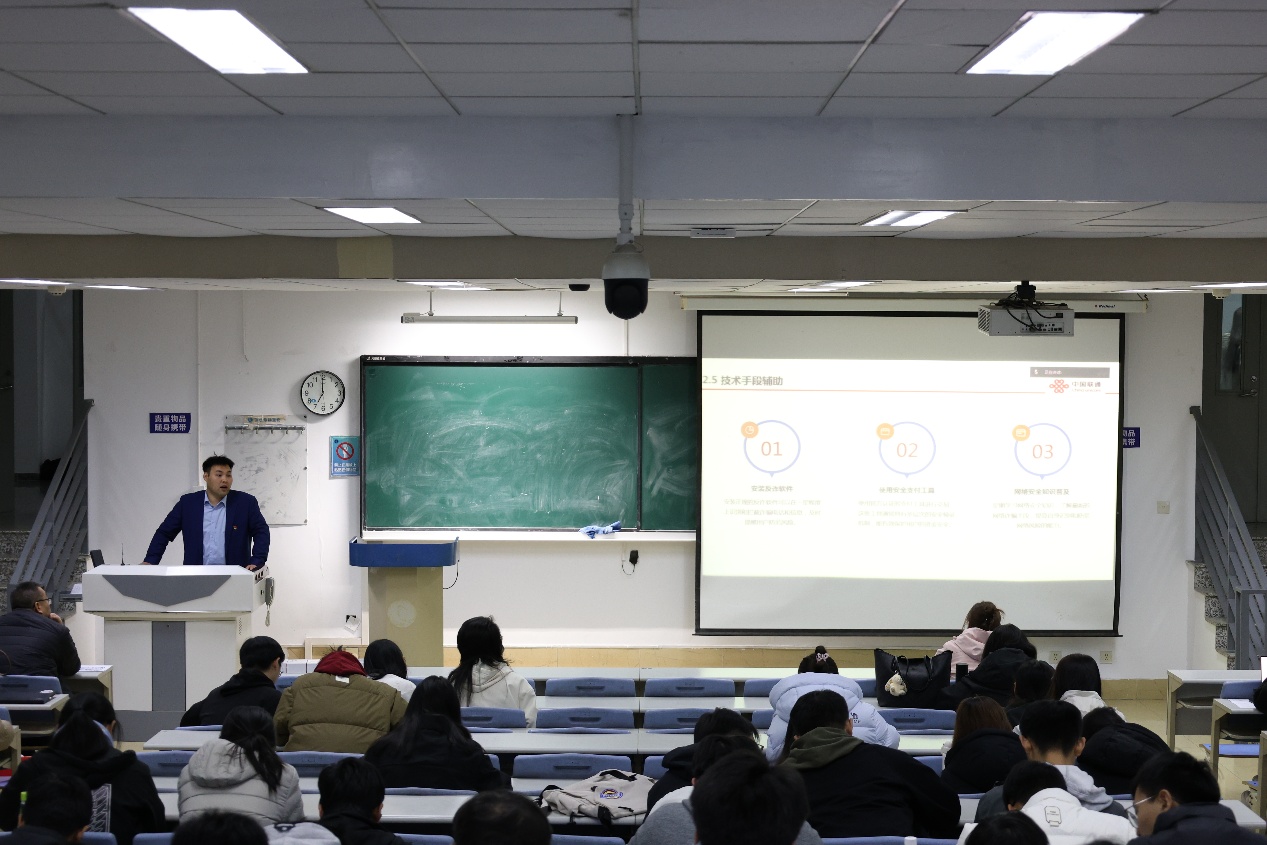 为深入学习贯彻习近平总书记关于国家安全的重要论述,积极响应学校“先锋领航·文明同行”主题教育活动部署,切实增强广大轻工学子网络素养与安全防范意识,筑牢校园网络安全坚固防线,有力维护学院安全稳定,近日,轻工科学与工程学院在滨海校区中院9号楼第5阶梯教室举办“网络安全,云智创新”主题宣讲会。滨海联通相关负责人受邀主讲,学院全体网格员同学参加活动。