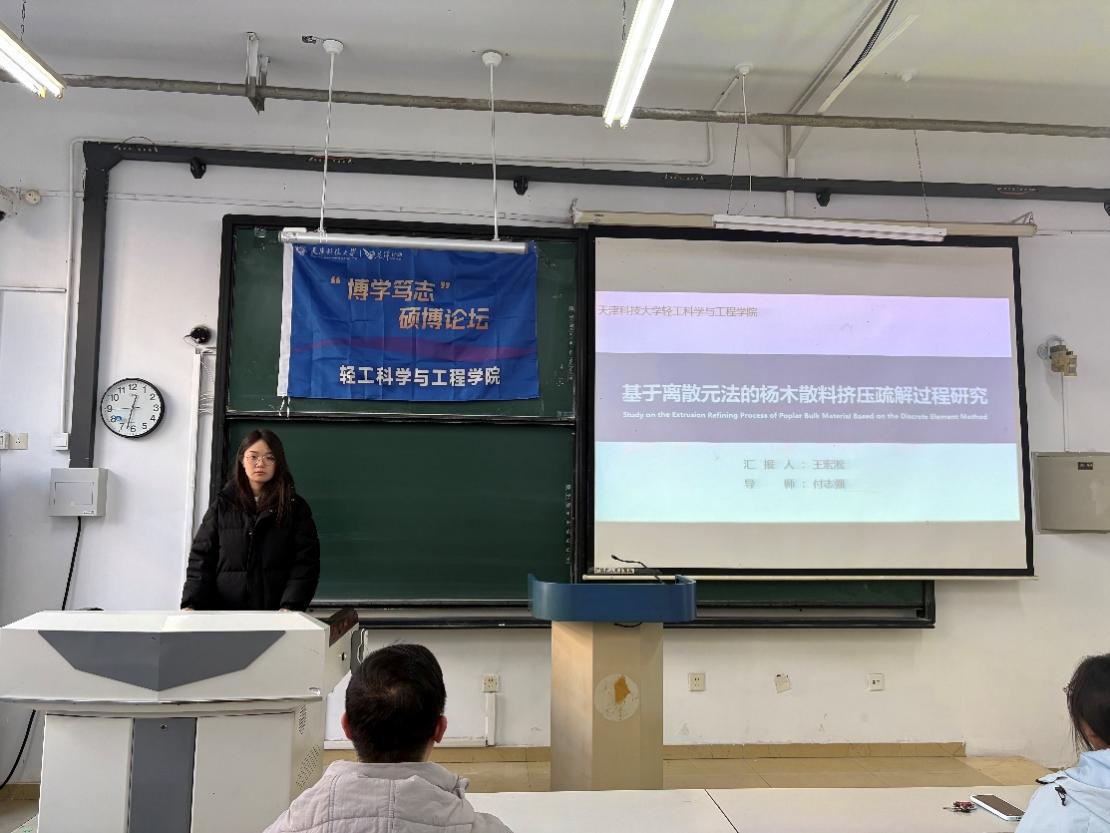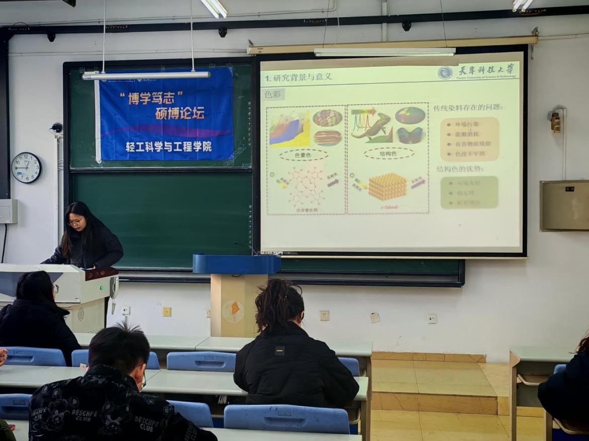 为深入贯彻落实学校第四次党代会精神,落实学校“先锋计划”,积极推动“研教卓越”行动计划见行见效,着力激发研究生的创新思维,积极搭建学术交流平台,营造学院浓厚的学术氛围,近日,轻工学院在滨海校区中院3号楼101、102教室举办了第182期“博学笃志”硕博论坛。2023级硕士研究生王宏淞、杨雯静主讲包印方向,田鑫、刘海主讲造纸方向,各年级研究生近100人参加活动。