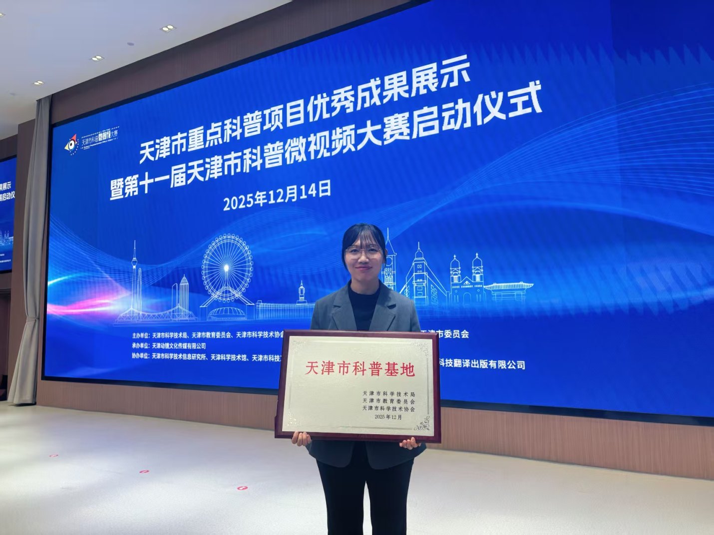 12月14日,天津市重点科普项目优秀成果展示暨第十一届天津市科普微视频大赛启动仪式在天开园举办,启动仪式上,“天津科技大学纸文化科普基地”作为2025年新认定的天津市科普基地获得由天津市科学技术局、天津市教育委员会和天津市科学技术协会联合颁发的“天津市科普基地”铜牌,标志着基地正式迈入市级科普基地发展新阶段。